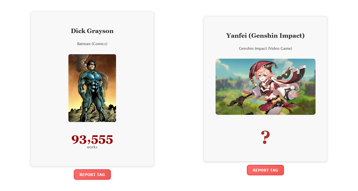 Errate, welcher Charakter oder Tag mehr Werke auf der Fanwork-Website Archive of Our Own hat.