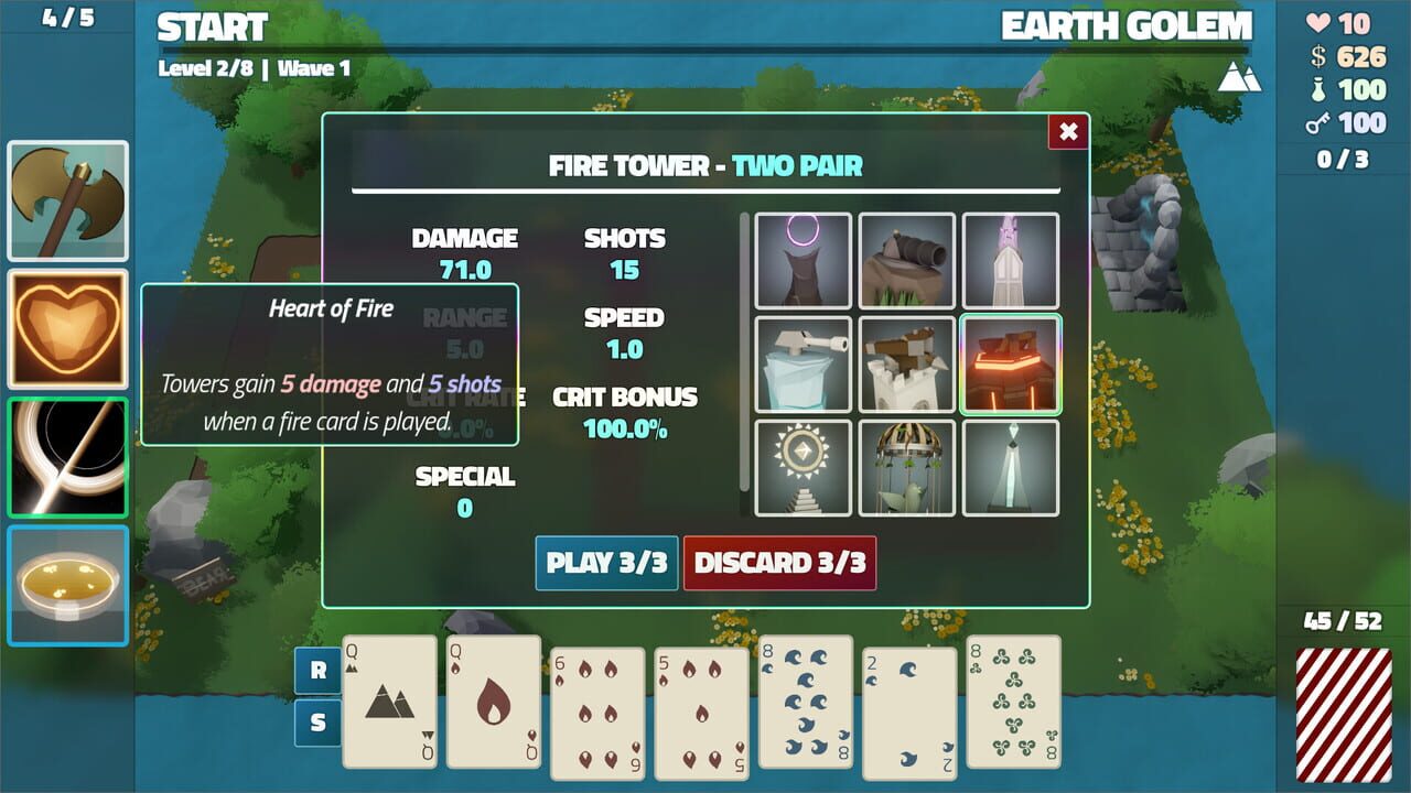 Ein Hybrid aus Kartenspiel und Tower Defense, bei dem die Karten, die du spielst, zu den Türmen werden, die du baust. Besiege die Feinde, die sich dem Bärenbau nähern, und finde Modifikatoren, die die Elemente deiner Verteidigungsstrategie unterstützen.