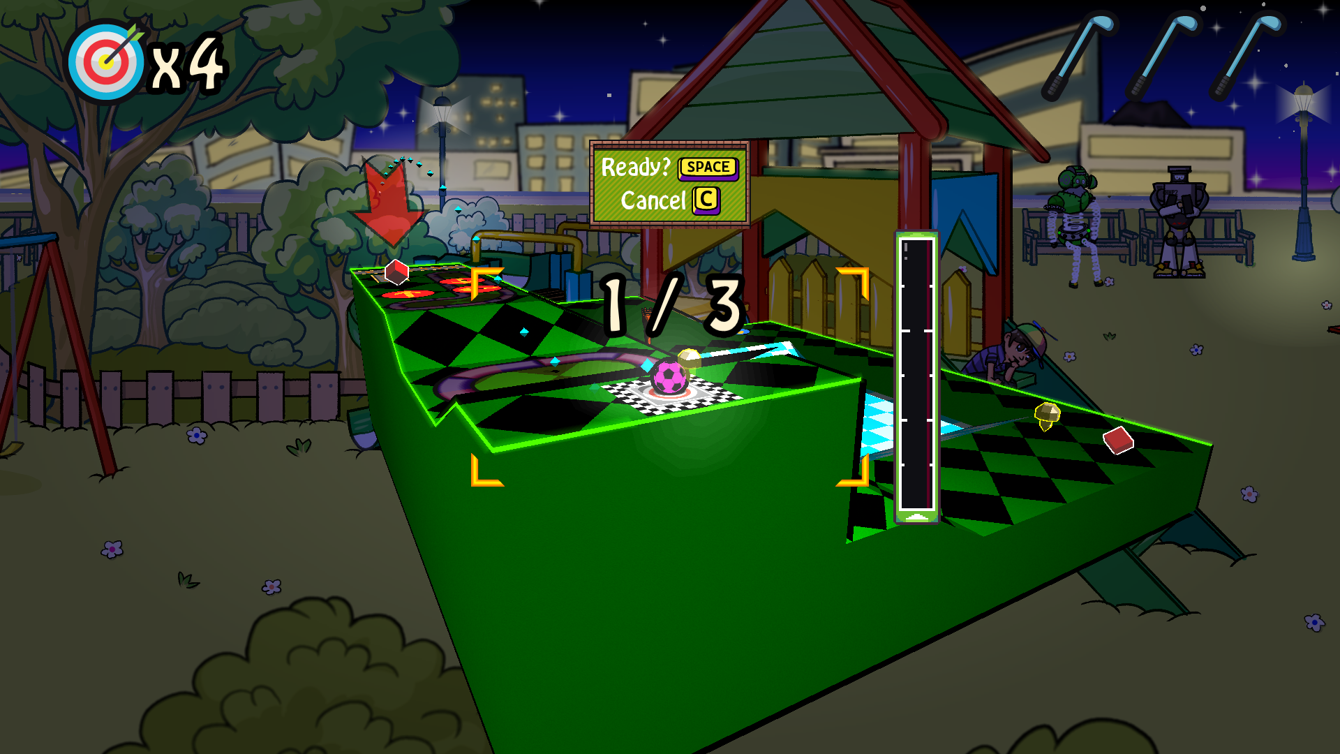 Minigolf mit einem chaotischen Twist! Kombiniere Fähigkeiten, mache Kurvenschüsse und eliminiere Ziele, bis der letzte zum Loch wird. Passe deinen Ball an, meistere wilde Power-Ups und trete im Wahnsinn des Battle-Modus an oder entdecke die Geheimnisse des Story-Modus und kämpfe gegen Bosse!