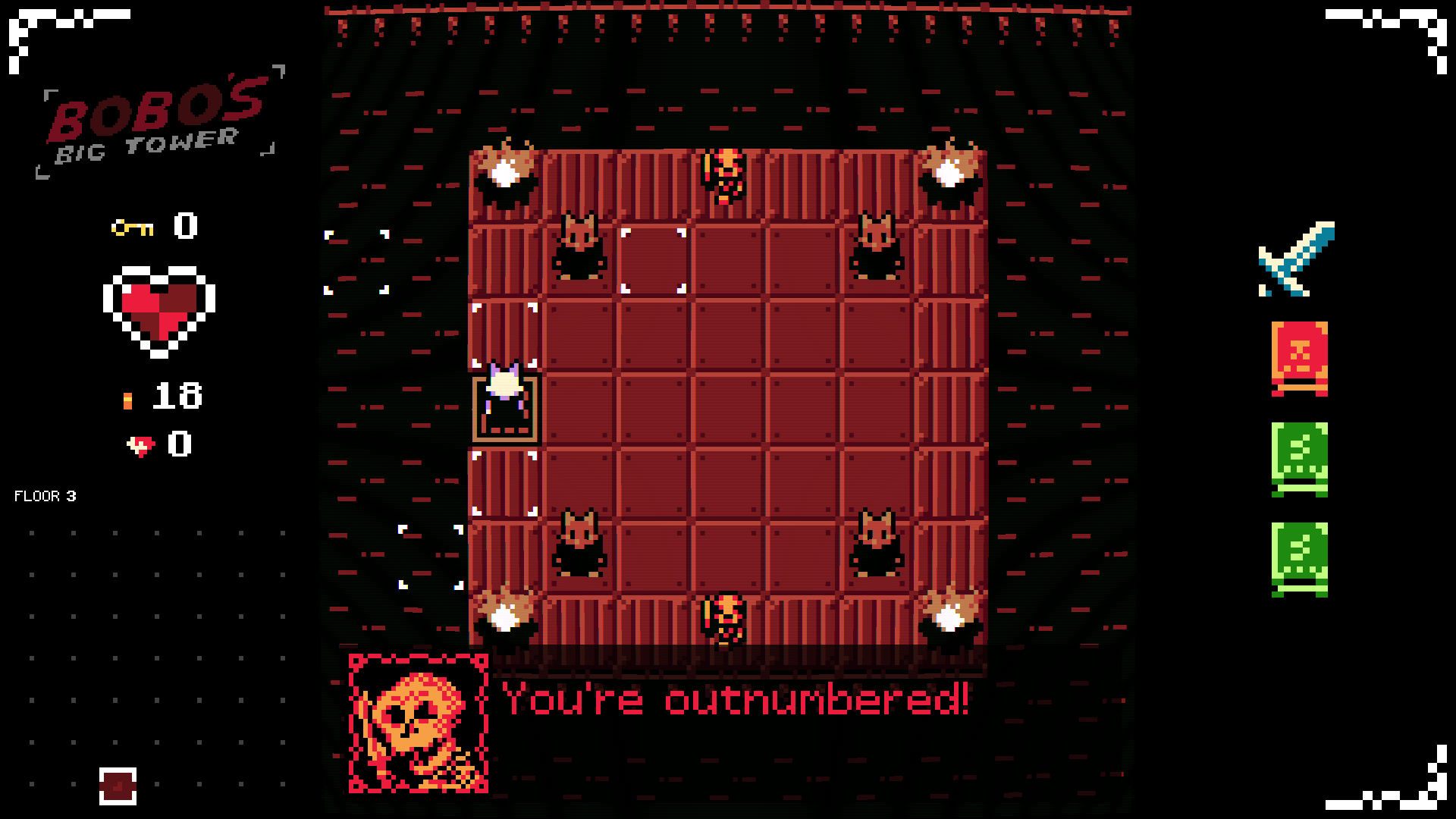 Die Zeit bewegt sich nur, wenn du es tust, also überliste deine Feinde, um an ihnen vorbeizukommen! Erkunde die prozedural generierten Etagen von Bobos großem Turm, um dein Arsenal endlos zu modifizieren und dich auf stärkere Gegner vorzubereiten. Schließe Herausforderungen ab, um neue Ladenartikel und spielbare Charaktere mit ihren eigenen Gegenstandspools, Bossen und Story-Enden freizuschalten!