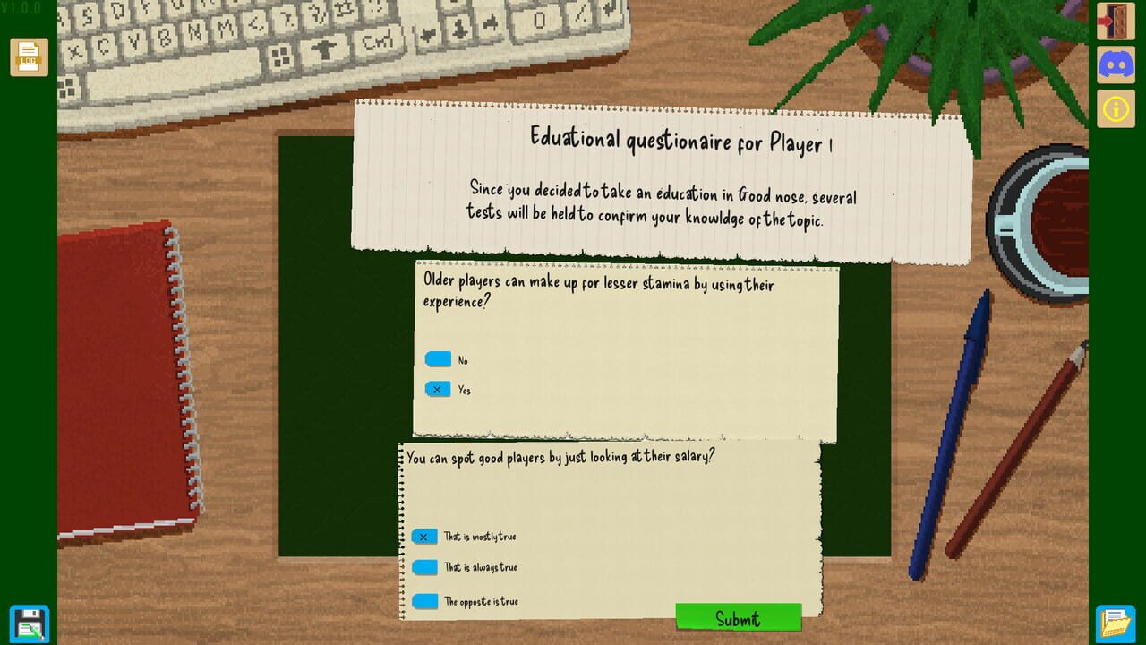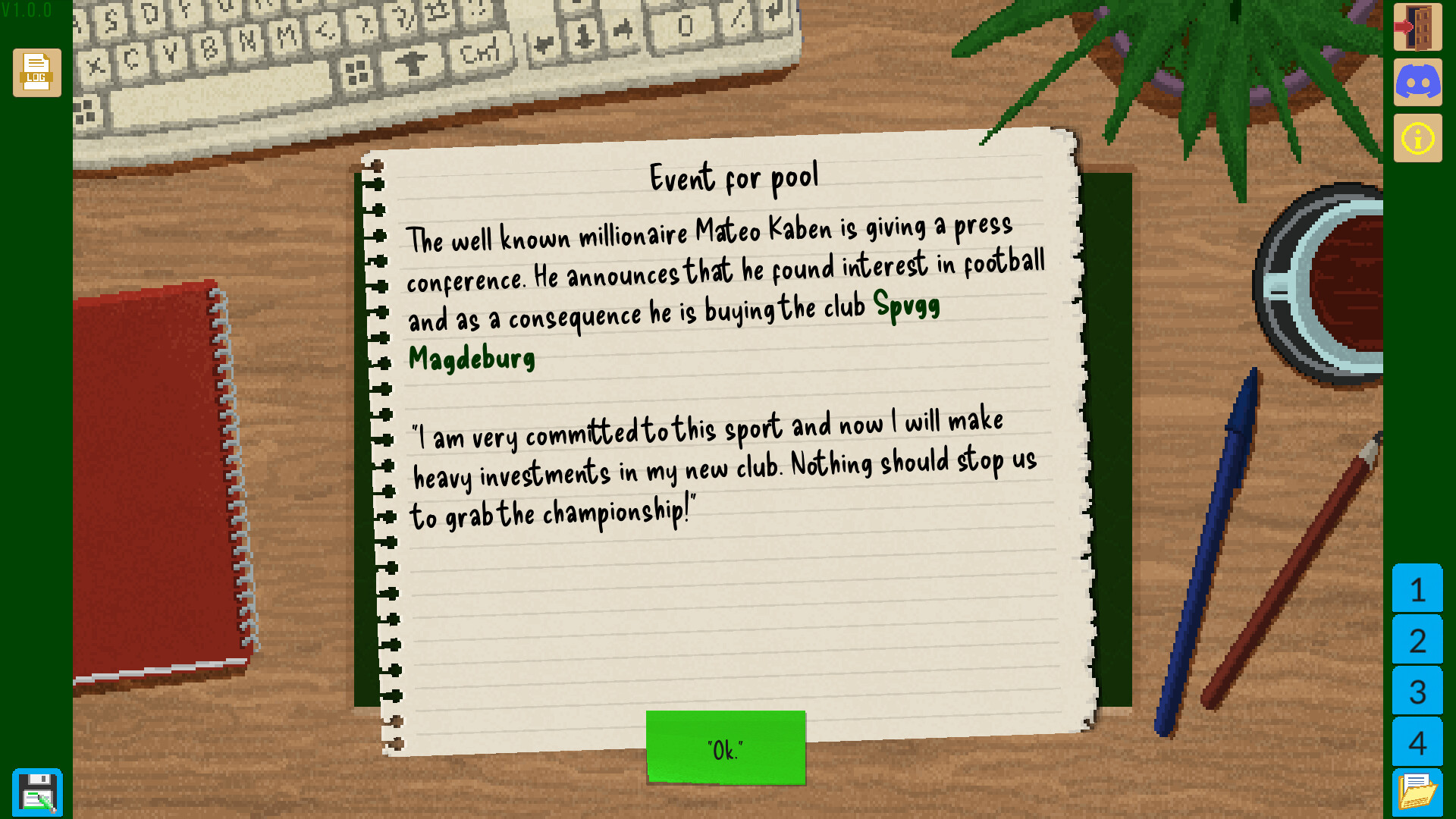 Ein klassischer Fußballmanager im Stil der Management-Spiele der 90er Jahre. Führe dein Team durch die Saisons, geprägt von dynamischen Story-Events. Entwickle deinen Verein und dich selbst, um Reputation zu gewinnen und deine Liga und die Welt zu erobern.