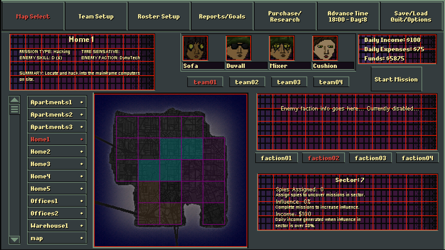 Schieße, hacke und entführe, während du kybernetische Agenten in Echtzeit-Taktikkämpfen mit Pause führst. Verbessere dein Team, manipuliere feindliche Agenten und setze Informanten ein, während du gegen rivalisierende Gruppen um die Kontrolle der Stadt kämpfst.