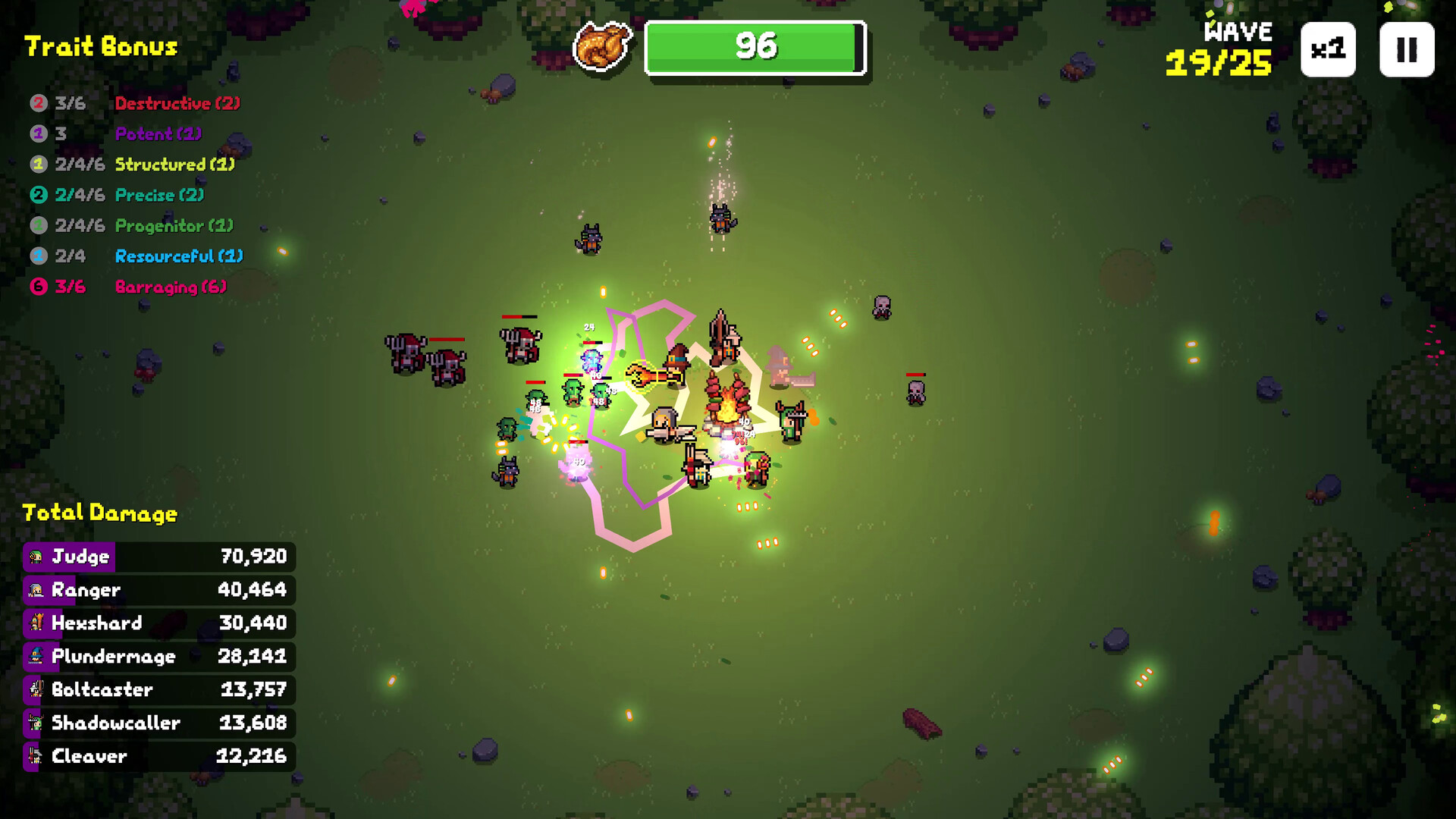 Schütze dein Lagerfeuer-Kochen in "Dinner Defenders", einem roguelike Tower-Defense-Spiel. Rufe Einheiten herbei und nutze die Kombination ihrer Fähigkeiten und Synergien, um die hungrigen Goblins und Orks abzuwehren. Überlebe und genieße endlich deine wohlverdiente Mahlzeit mitten im Wald!