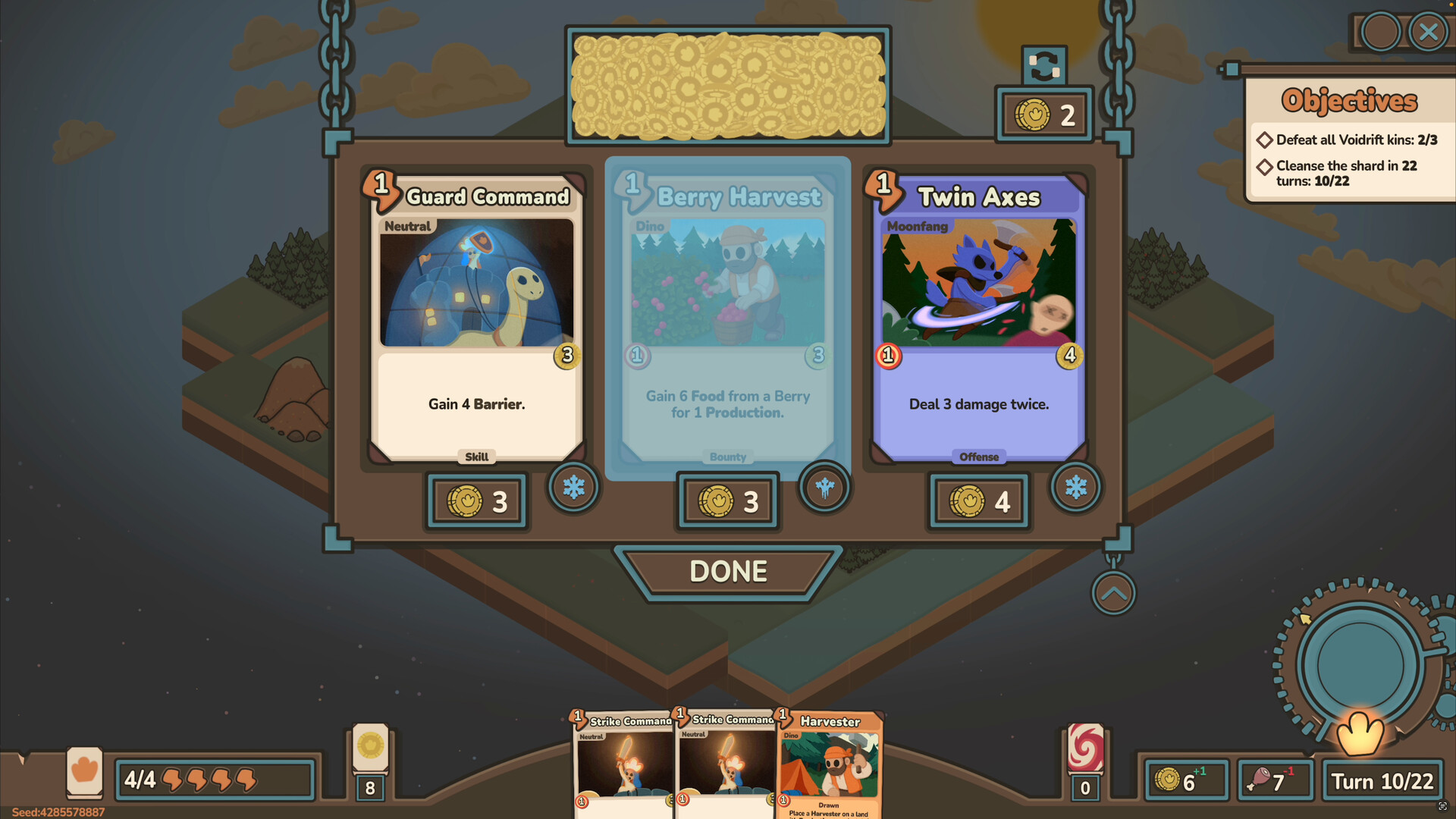Befehlige ein Schloss-auf-einem-Dino durch eine korrupte Welt. Rette gefallene Verbündete, führe sie in die Schlacht und baue dein Deck auf. Verwalte deine Wirtschaft, um Karten zu ziehen und tritt dem Leerenriss in diesem taktischen Roguelike-Deckbauer entgegen.