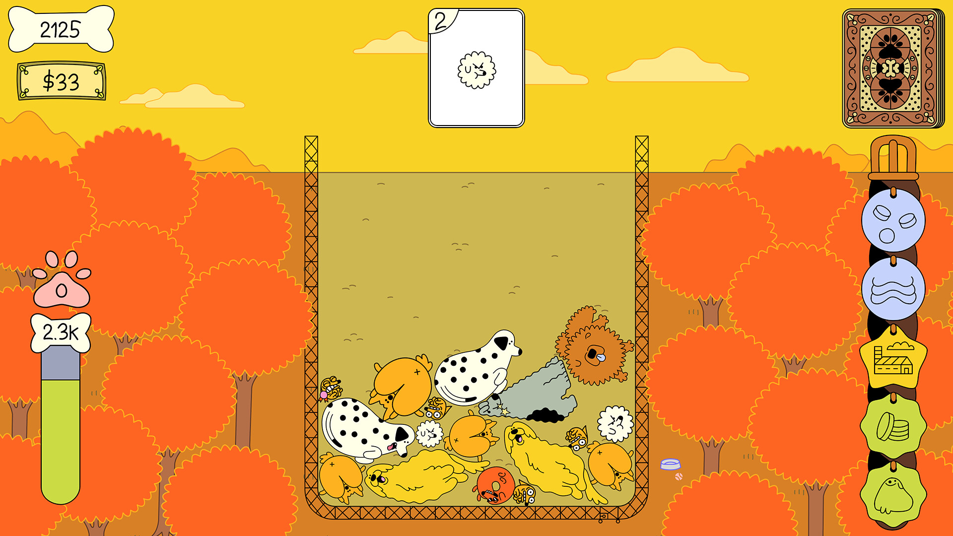 Dogpile ist ein roguelike Deck-Building-Spiel, bei dem es darum geht, niedliche Hunde zu größeren Hunden zu verschmelzen. Spiele Hunde, verdiene Geld, individualisiere deine Hunde mit besonderen Eigenschaften, verfeinere dein Deck, SPIELE MEHR HUNDE! HUNDE!