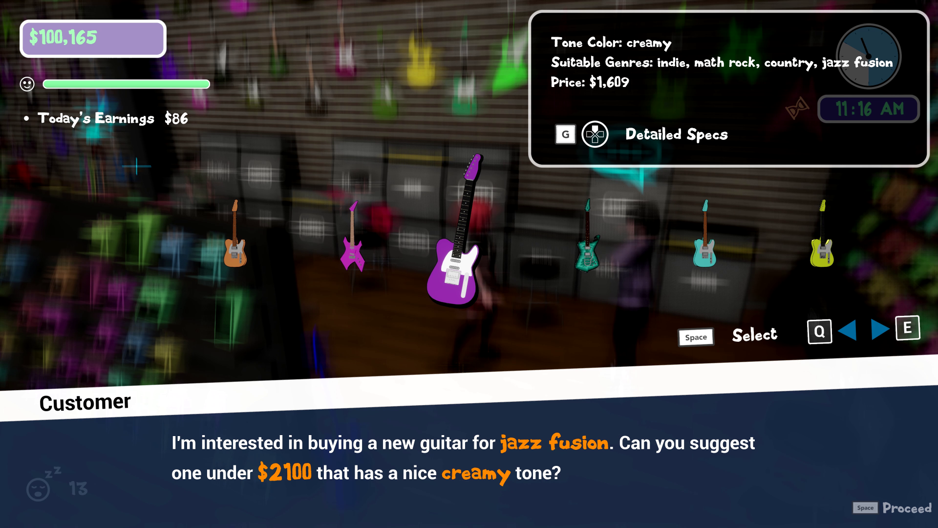 Arbeite tagsüber in einem Gitarrengeschäft! Kämpfe nachts gegen Monster! Baue individuelle Gitarren!