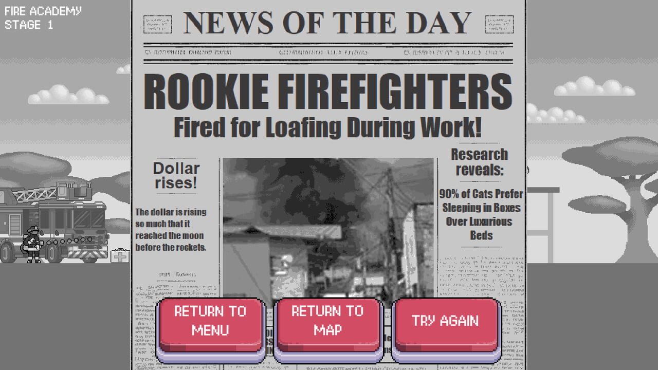 Ein Plattform-Actionspiel, in dem du Feuerwehrleute steuerst, die Wasserstrahlen abfeuern, um die Flammen zu löschen, die über die Level verstreut sind. Du musst auf Plattformen springen, Fallen und Gefahren vermeiden und Opfer zusammen mit ihren kostbaren Gegenständen retten, indem du sie in eine sichere Zone bringst. Aber sei sehr vorsichtig - wenn du die Rettung nicht rechtzeitig abschließt, werden die Flammen alles verzehren.