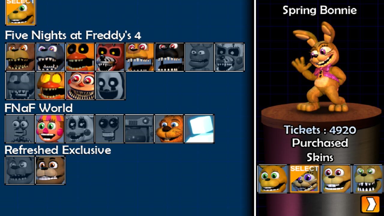 FNaF World: Refreshed ist eine Überarbeitung des Originalspiels. Das Ziel des Spiels ist es, dem Spieler mehr FNaF World zu bieten, denn wer liebt FNaF World nicht?