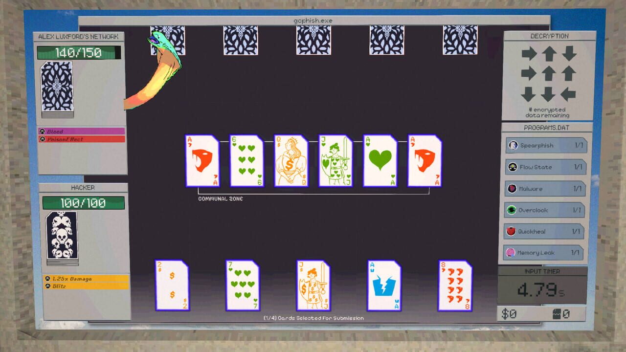 "Go Fish or go homeless" ist ein rogue-ähnliches Schuldenaufbau-Spiel, in dem du deine Miete bezahlst, indem du ein Ziel beim Phishing in einer aufgeladenen Version des klassischen Kartenspiels austrickst. Knacke das Passwort deiner Opfer in einem dynamischen Dialogsystem und nutze deine Ausrüstung aus freischaltbaren Anzügen und Gegenständen, um ihren PC zu hacken und ihre Ersparnisse zu plündern.