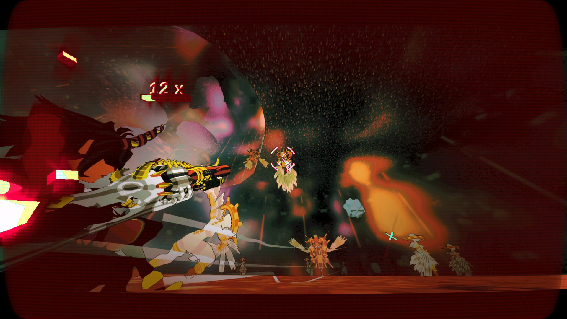 Selbstreplizierende Engelskräfte schwärmen durch den unendlichen Höllenstab. Ein winziger Dämon stürzt frei nach unten und mäht Engel nieder, während ihr Untergang näher rückt.