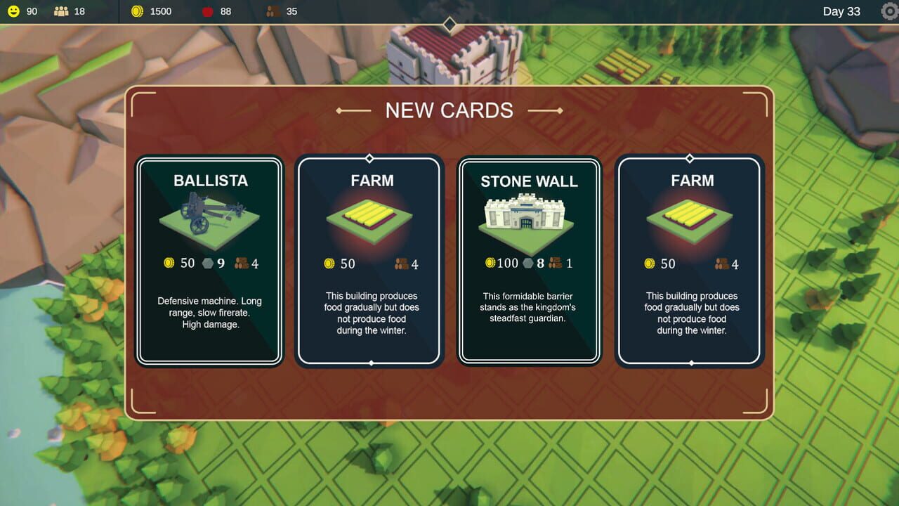 Kingdom's Deck ist ein Städtebau- und Kartenspiel, bei dem du auf eine Reise gehst, um dein bescheidenes Dorf in ein mächtiges Imperium zu verwandeln. Setze deine Karten klug ein, verteidige deine Mauern vor Belagerungen, verwalte deine Ressourcen, reagiere auf verschiedene aufregende Ereignisse und erschaffe das ultimative Königreichsdeck!