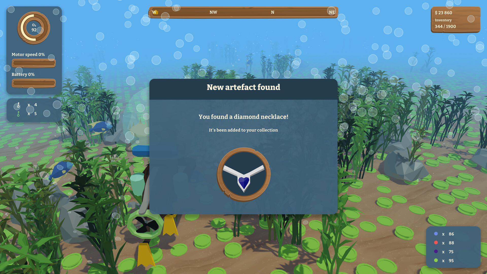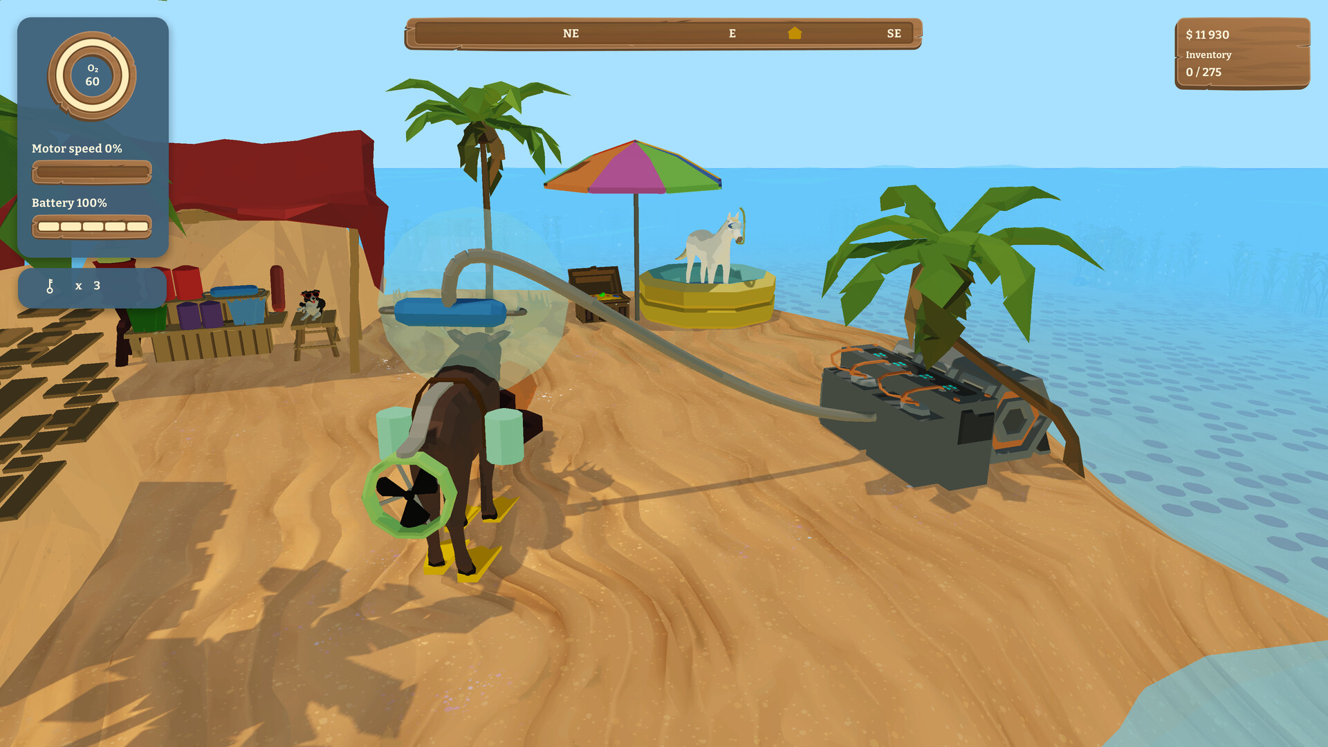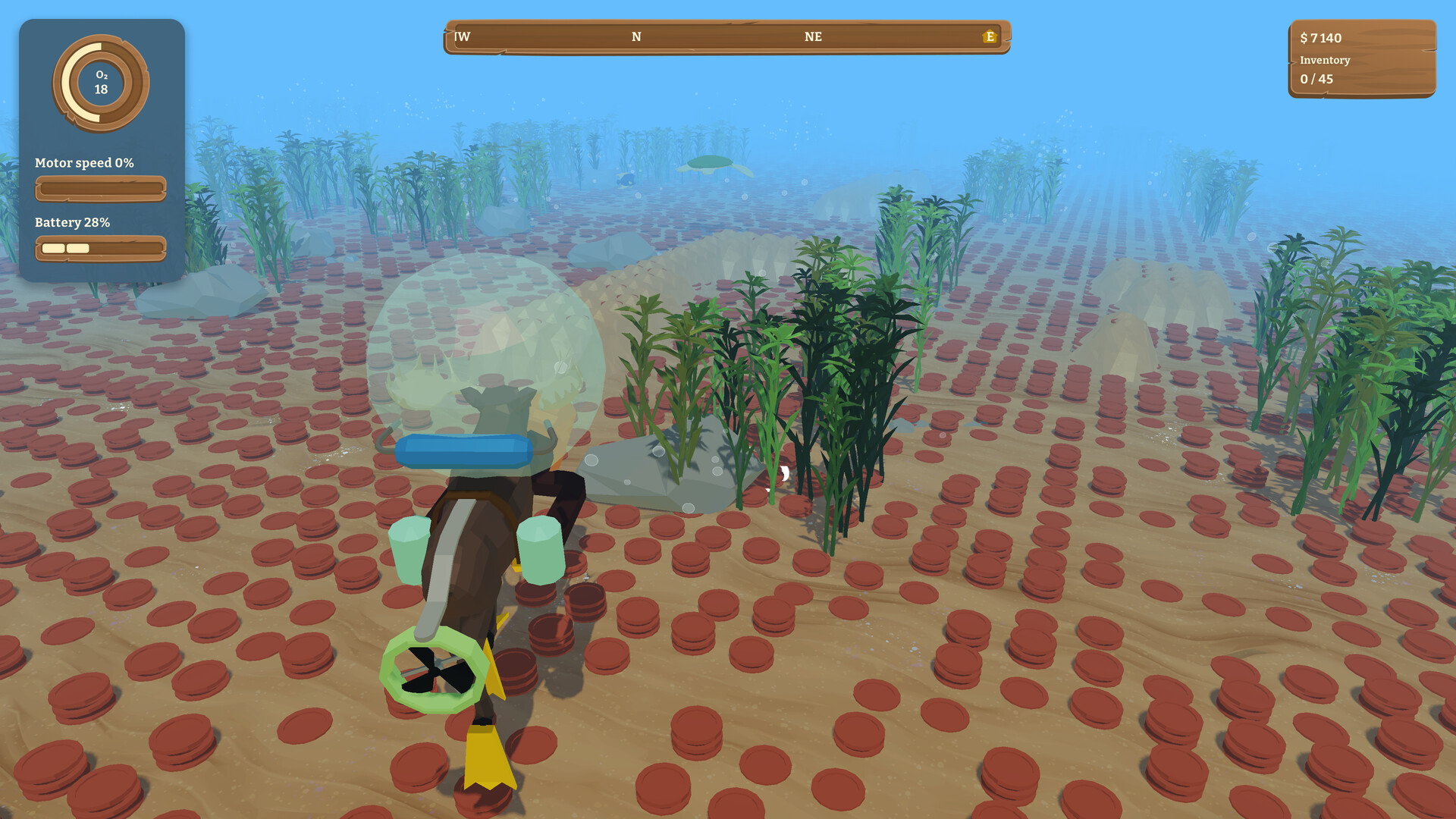 Du bist ein Elch auf einem Tauchabenteuer. Schwimme in den Ozean und sauge Münzen vom Meeresboden auf. Verkaufe die Münzen und verdiene Geld, um Ausrüstung zu verbessern und neue zu kaufen. Tauche tiefer und finde Schatztruhen, um Kraft steigernde Artefakte zu sammeln, aber vergiss nicht, auf deinen Sauerstoffpegel zu achten.