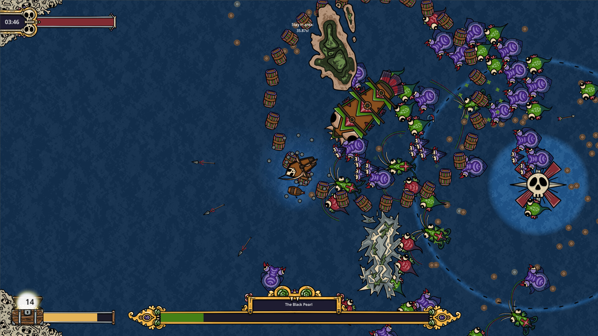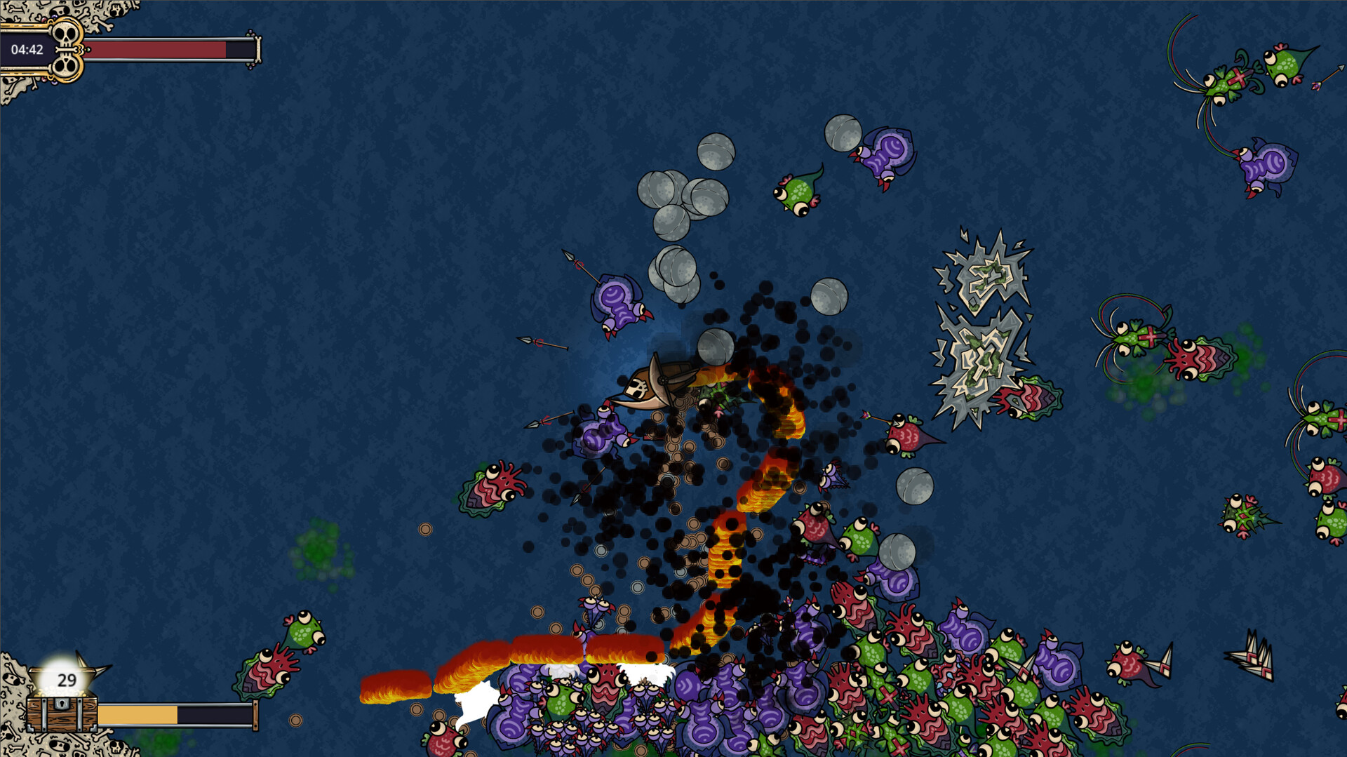 "Pirate Survivors" ist ein actiongeladenes Roguelite-Spiel, in dem du endlose Wellen von Seeungeheuern bekämpfst, mächtige Upgrades freischaltest und dich tödlichen Seegespenstern stellst. Wähle dein Schiff, besiege unzählige Feinde und meistere immer schwieriger werdende Herausforderungen in diesem nervenaufreibenden Bullet-Hell-Abenteuer!