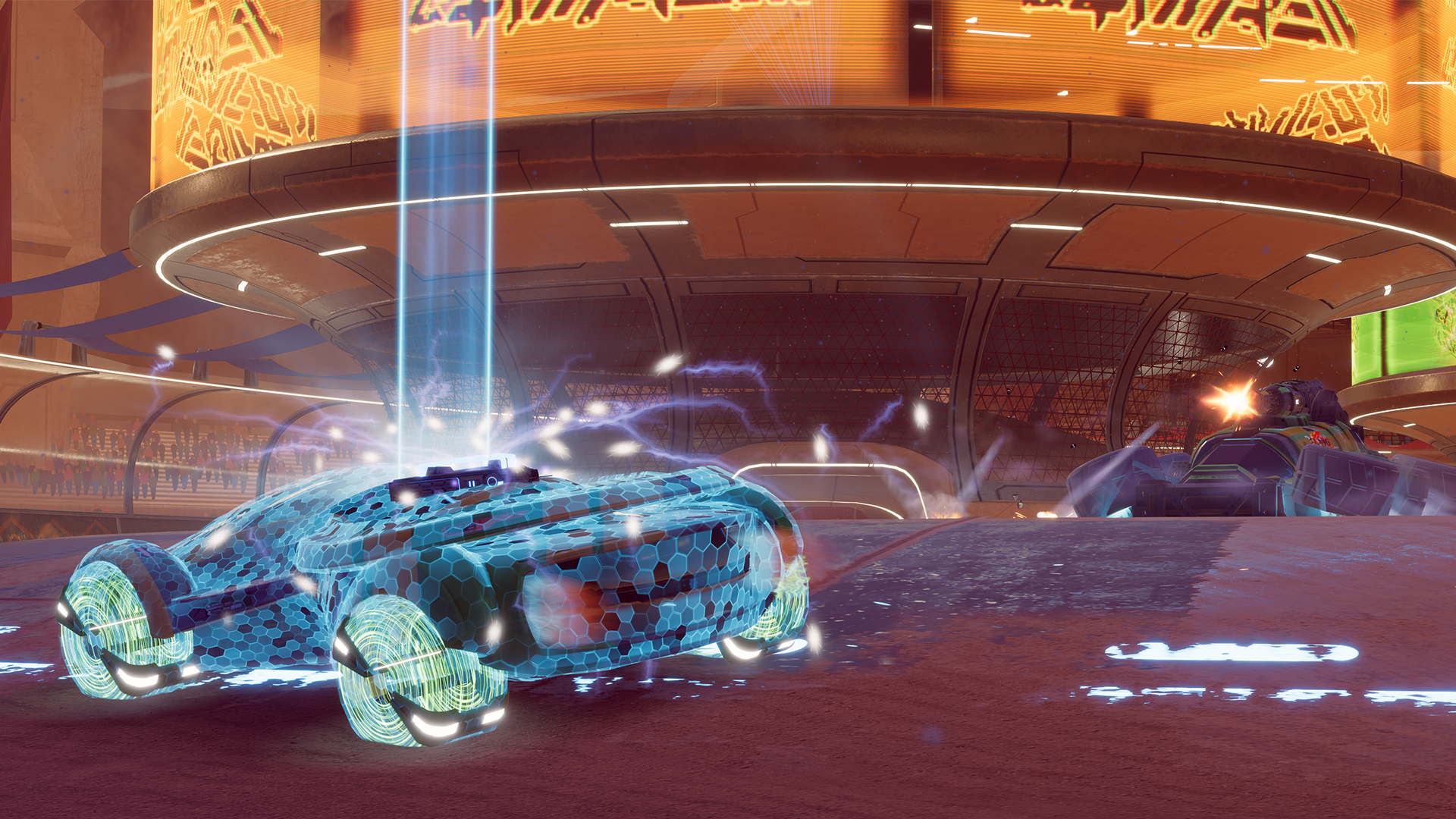 'Rivals Hover League' ist ein PvP-Spiel mit vehikulärem Kampf, in dem Spieler in Arenen im ganzen Universum mit Hover-Fahrzeugen mit verschiedenen Fähigkeiten kämpfen. Schließe dich deinen Teamkollegen an und zeige deine Fähigkeiten - schwebe, booste und schieße dich zum MVP!