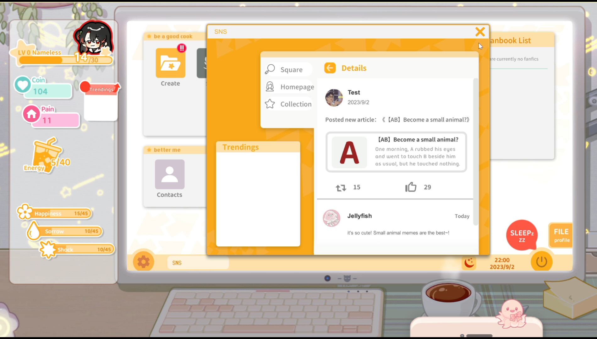 Sensei! Ich mag dich so sehr! ist ein Fangirl-Simulator. Schlüpfe in die Rolle einer leidenschaftlichen Fangirls und begebe dich auf eine Reise durch die lebhafte Welt der Fan-Kultur in diesem immersiven Simulationsmanagement-Spiel.