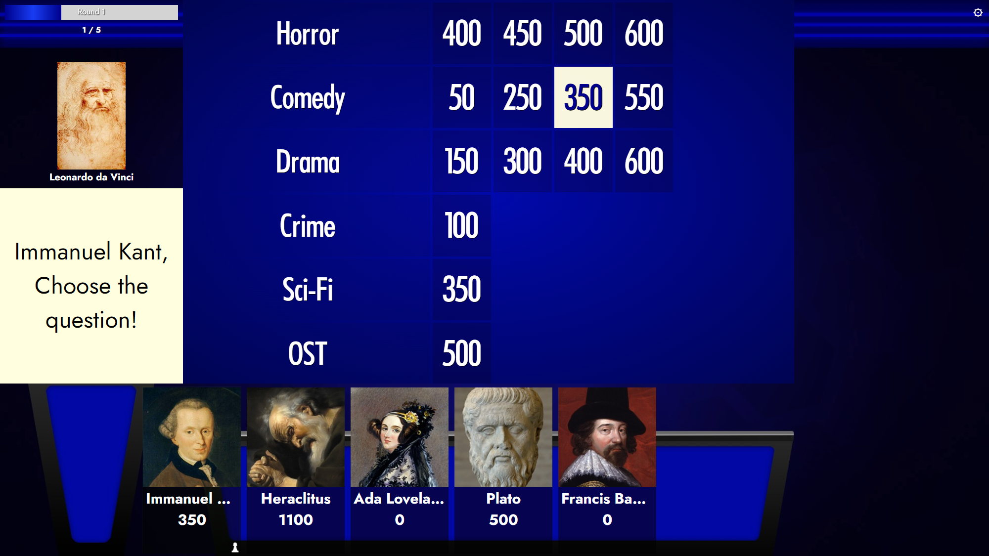 Der Gewinner des Spiels ist der Spieler mit dem höchsten Punktestand nach der letzten Frage.