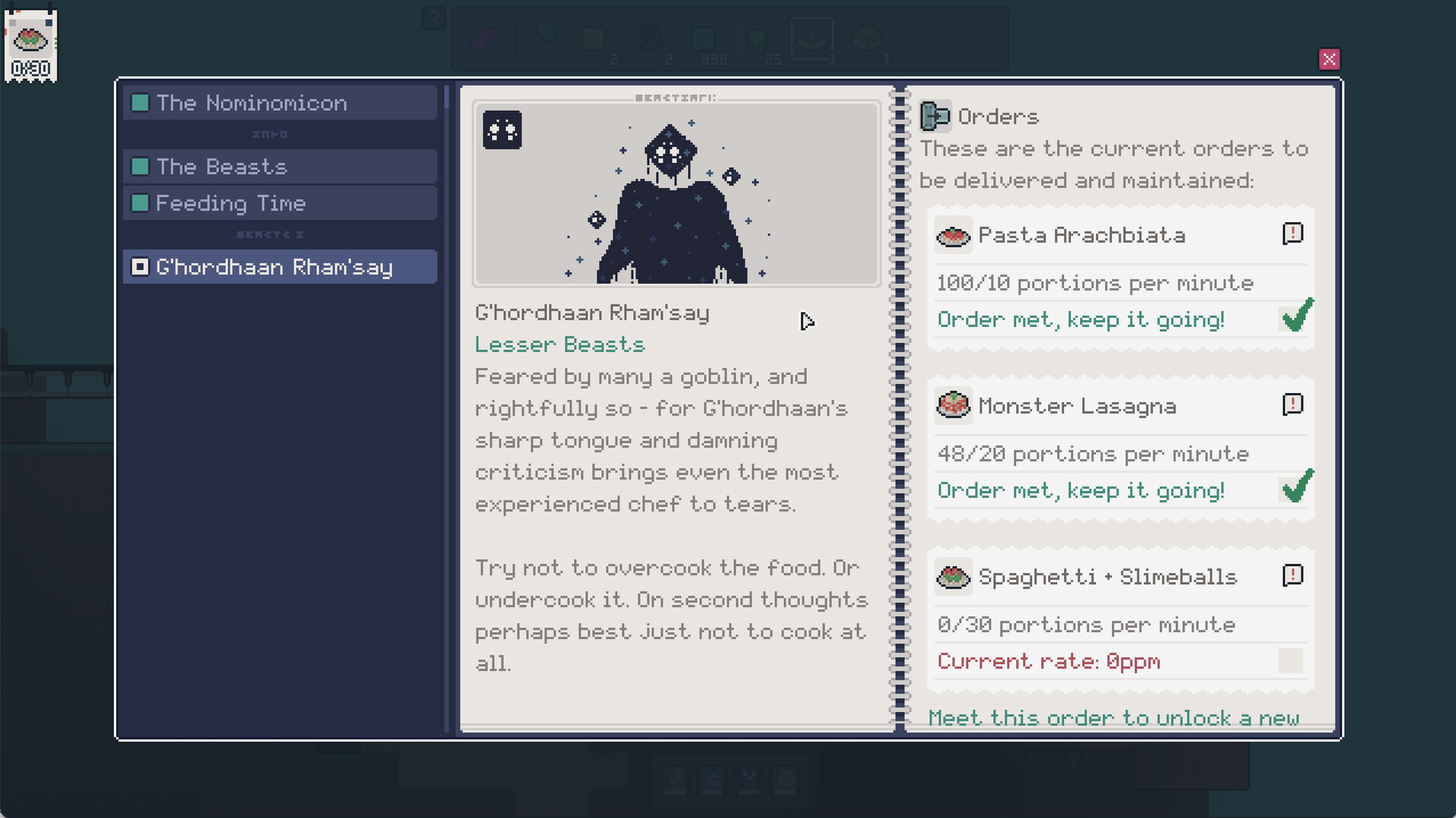 Snacktorio ist ein Fabrik-Kochsimulator, in dem du die Appetite unbeschreiblicher Schrecken befriedigen musst... mit Essen! Baue und verwalte weitläufige Netzwerke von Maschinen & Rohren, um köstliche Mahlzeiten in Massenproduktion herzustellen, die den endlosen Hunger der Bestien stillen können, die dein Zuhause überfallen. Bestellung aufgeben!