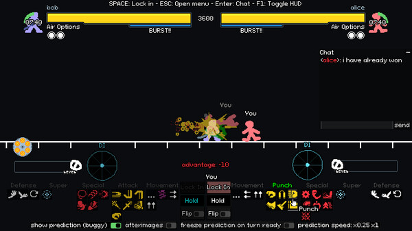 "Your Only Move Is Hustle" ist ein Online-, rundenbasiertes Kampfspiel und ein Simulator für übernatürliche Kampfszenen. Mit einem einzigartigen und zugänglichen Steuerschema nutze die Kraft der Präkognition, um den perfekten Schlag zu landen. Meistere deine Technik, führe spektakuläre Kombos aus und überliste Gegner auf der ganzen Welt, Frame für Frame.
