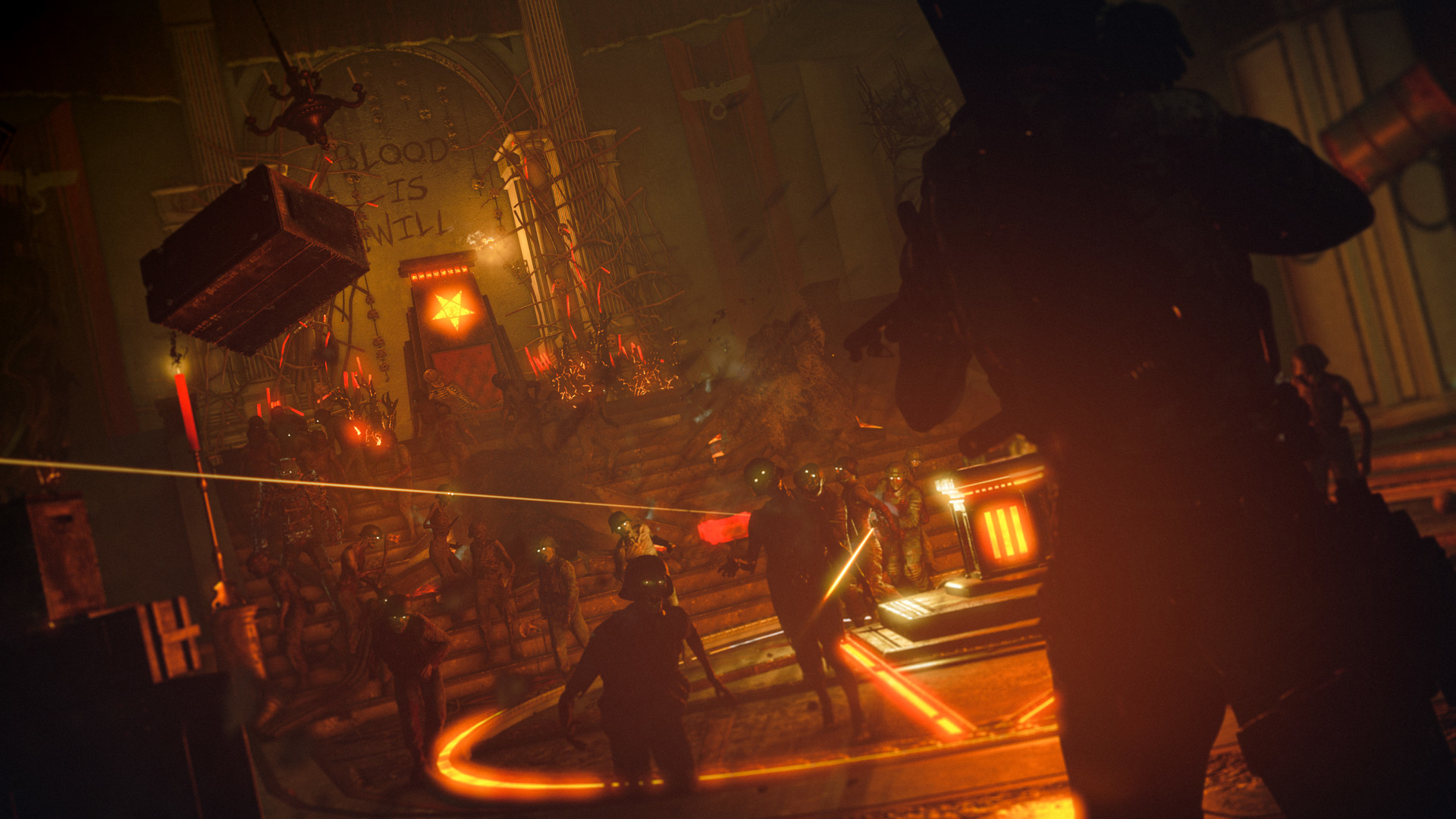 Es ist Zeit, das zu beenden! Erfahre die finsteren Geheimnisse, die die Zombie-Apokalypse in Gang gesetzt haben, und wage dich tief in die Hölle selbst, während du sprintest, um einen gefallenen Verbündeten vor einem Schicksal schlimmer als der Tod zu retten, einem Ort, der nur als die Leere bekannt ist. Werden die Kräfte des Okkulten ihren endgültigen Sieg haben, oder wird die Glocke für sie läuten?